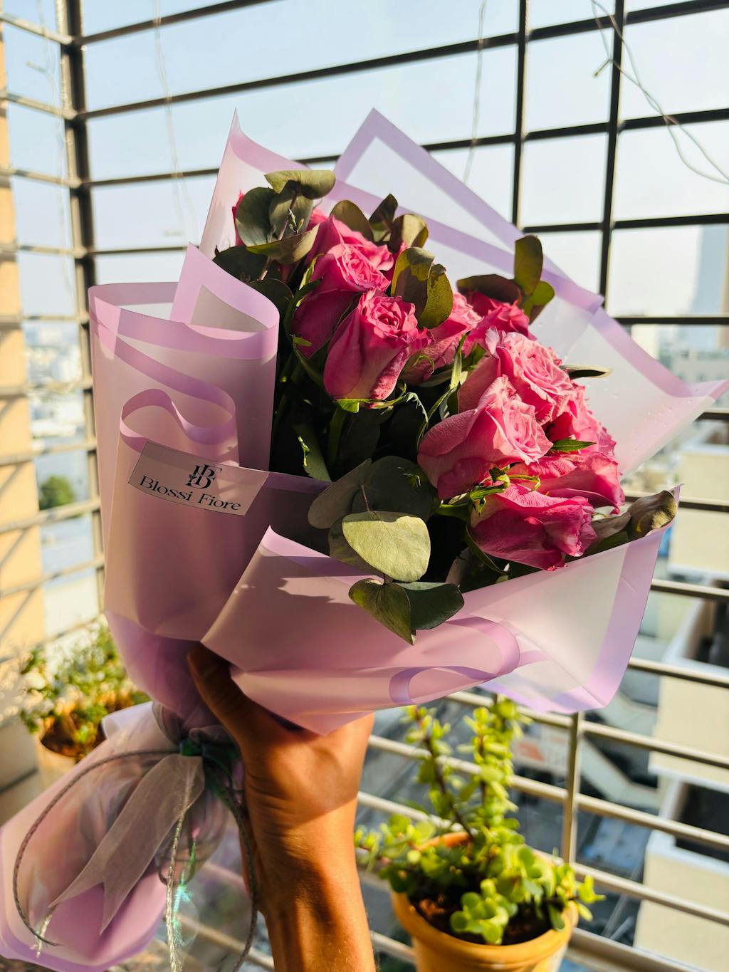 Mauve Haze is a soft, elegant arrangement featuring Mauve Roses paired with fresh Eucalyptus, wrapped in a delicate lavender sheet. The gentle mauve tones and soothing greens create a dreamy, modern aesthetic perfect for gifting, décor, or expressing heartfelt emotions. Simple, refined, and beautifully curated — Mauve Haze adds a touch of calm sophistication to any space.